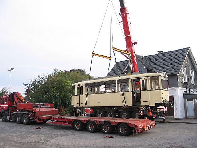 verlegten Gleis aufgestellt. Hier sehen wir den Transport