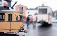 dem "Buckeligen" nach Haspe![]() Modell und Original vor dem ehemaligen Breckerfelder Bahnhof. Am Wochenende wurde das hundertjährige Bestehen des Gebäudes gefeiert. (WR-Bild: Dietmar Wäsche) Breckerfeld. Hagen über Voerde nach Breckerfeld. Das war die Route der Straßenbahn-Linie 11. Am Wochenende konnte man die Strecke wieder befahren: Historische Busse brachten zum 100-jährigen Bestehen des Breckerfelder Bahnhofsgebäudes die Gäste in die Hansestadt. Von Christoph Rosenthal: Ruhig tuckert der Dieselmotor des Daimler O 317 vor sich hin. Etwas verloren wirkt das elfenbeinfarbige Schätzchen zwischen dem Solitär der Neuen Mitte und der Glasfassade des Sparkassenkarrees. Und doch strahlt der Anderthalbdecker eine gewisse Würde aus, als er um 13.10 Uhr nach über 30 Jahren wieder jene Haltestelle verlässt, die ihm als "Rathaus" in Erinnerung geblieben ist. Sein Enkel, die 511 des VRR, nennt diesen Platz nun "Stadtmitte". "Ich bin früher als Kind mit diesem Bus gefahren", erzählt Thomas Große. Er ist wie gut zwei Dutzend andere Fahrgäste von Anfang an dabei. "Ich erinnere mich an diese Reisegeräusche: Wenn der bremst oder die Türen aufmacht." Sein Freund Martin Kluger und er fühlen sich gleich in eine andere Zeit versetzt; eine Zeit, in der der Fahrgastraum nicht von Neonlicht durchflutet, sondern von organisch geformten Leuchtern warm ausgestrahlt wurde. Wie Kinder bitten sie die anderen Fahrgäste, für sie "drücken" zu dürfen, um das Versprechen "Wagen hält" rot aufleuchten zu lassen: "Wir möchten das mal fotografieren!" Pünktlich um 13.31 Uhr erreicht "die 11" den Hüttenplatz. Hasperin Doris Dey traut ihren Augen kaum, als sie sieht, welcher Bus sie befördern soll. "Ein bisschen Nostalgie", sagt Dey beim Vorzeigen ihrer Fahrkarte. "Das ist mal was Anderes." Fahrer Gerhard Gurdian, der im wahren Leben in der Leitstelle der Essener Verkehrsbetriebe arbeitet, dreht wieder am großen Lenkrad des ehrwürdigen Benz. "Rucksackbus haben wir immer dazu gesagt", erinnert sich Doris Dey. "Oder der Buckelige", wegen seiner charakteristischen Form. "Die Straßenbahn fuhr am Schützenhof abseits der Straße auf einer eigenen Trasse." Darum war "die 11" eine der landschaftlich schönsten Linien Deutschlands. Die historischen Busse wurden aus Essen und Düsseldorf geliehen. Um die verbliebenen Hagener Straßenbahnwaggons zu sehen, musste Große sonst nach Wuppertal-Kohlfurth fahren. Nicht jedoch an diesem Wochenende: Wagen 337, "Linie 11 - Hagen-Markt," wurde zum Jubiläum auf den Bahnhofsvorplatz Breckerfeld gebracht. Um 14.04 Uhr, nach fast einer Stunde Fahrt, ist das Ziel erreicht: Das Ensemble des genau 50 Jahre alten Triebwagens und des etwa 30 Jahre alten Busses vor dem 100 Jahre alten Bahnhof lässt die Herzen der Nostalgiker und Fotografen gleichermaßen höher schlagen. Alte Linie befahren HINTERGRUND