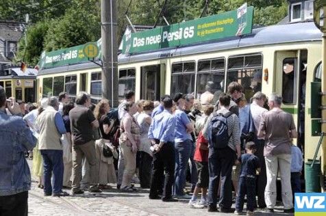 quietschend den Berg hinauf von Julia Perkowski Historisch: Kohlfurth Cronenberg und zurück. Die erste Fahrt der Museumsbahn ist ausgebucht. ![]() Bei der ersten Fahrt von der Kohlfurth nach Cronenberg war die Museumsbahn voll besetzt. (Fotos (2): Andreas Fischer) Wuppertal. In Biergärten und Cafés sitzen die Menschen dicht gedrängt: Am Ostersonntag zieht es viele nach draußen an die frische Luft. Auch am Eingang zur Museumsbahn an der Kohlfurther Brücke staut es sich zeitweise die erste Bahnfahrt in diesem Jahr ist vor allem für Eltern und Großeltern mit Kindern ein spannender Osterausflug. Das Wetter ist so schön und wir wollen mit den Kindern nicht nur drinnen sitzen, sagt Yvonne Kasimir. Sie und ihre drei Kinder nutzen die Bahn regelmäßig. Wir fahren auf den Berg und dann gehen wir zu Fuß runter und sammeln Blätter und schauen uns Insekten an, erzählt die kleine Nadine. In den Kurven halten sich die Kinder die Ohren zu Dann quietscht es hinter der großen Werkshalle, in der die alten Bahnen restauriert und in Schuss gehalten werden. Wenig später fährt die Bahn die letzten Meter zu den wartenden Fahrgästen. Zwei Wagen sind an diesem Tag in Betrieb. 32 Sitzplätze gibt es pro Bahn. Dreißig Minuten dauert eine Fahrt, bis man wieder am Ausgangspunkt angekommen ist. ![]() Nach fünf Minuten Pause und beladen mit neuen Fahrgästen macht sich die Bahn wieder auf den Weg durch das enge Tal und kämpft sich den Berg hoch. Die kleinen Fahrgäste schauen begeistert aus dem Fenster und halten sich in den Kurven die Ohren zu. Es ist wie früher, als die Bahnen noch durch die Stadt gefahren sind. Liesel Winter, Fahrgast Das Quietschen der alten Bahn erinnert zumindest die älteren Fahrgäste an andere Zeiten: Es ist wie früher, als die Bahnen noch durch die Stadt gefahren sind. Die waren auch ziemlich laut, sagt Liesel Winter. Überhaupt ist alles in der Bahn nostalgisch, erinnert an längst vergangene Zeiten. Der Schaffner kontrolliert die Fahrkarten und die alten Schilder, die darum bitten nicht zu rauchen versetzen die Fahrgäste um Jahre zurück: Ich fühl mich wieder wie der junge Kerl, der ich mal war, als ich täglich mit der Bahn zur Arbeit gefahren bin, sagt Rüdiger Kleine. Nur das Bimmeln eines Handys dämpft kurz vor der Endstation die nostalgische Stimmung. Ich will raus, es ist so warm, sagt ein kleiner Junge einige Plätze weiter vorne. Die Erklärung seiner Mutter, dass die alten Wagen keine Klimaanlage haben, bekommt er nicht mit. Er ist schon auf dem Weg zur Spielzeugbahn, die ihn für kurze Zeit selbst zum Lokführer werden lässt. 13.4.2009, Westdeutsche Zeitung |